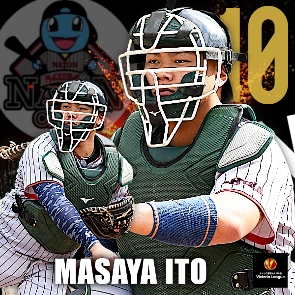 不動の爆肩正捕手として投手陣を支え、チーム随一の飛距離を誇る豪快な打力も兼備。見た目の印象を裏切る若さあふれるプレーで、まさに年齢不詳ニキとしてチームを盛り上げる。