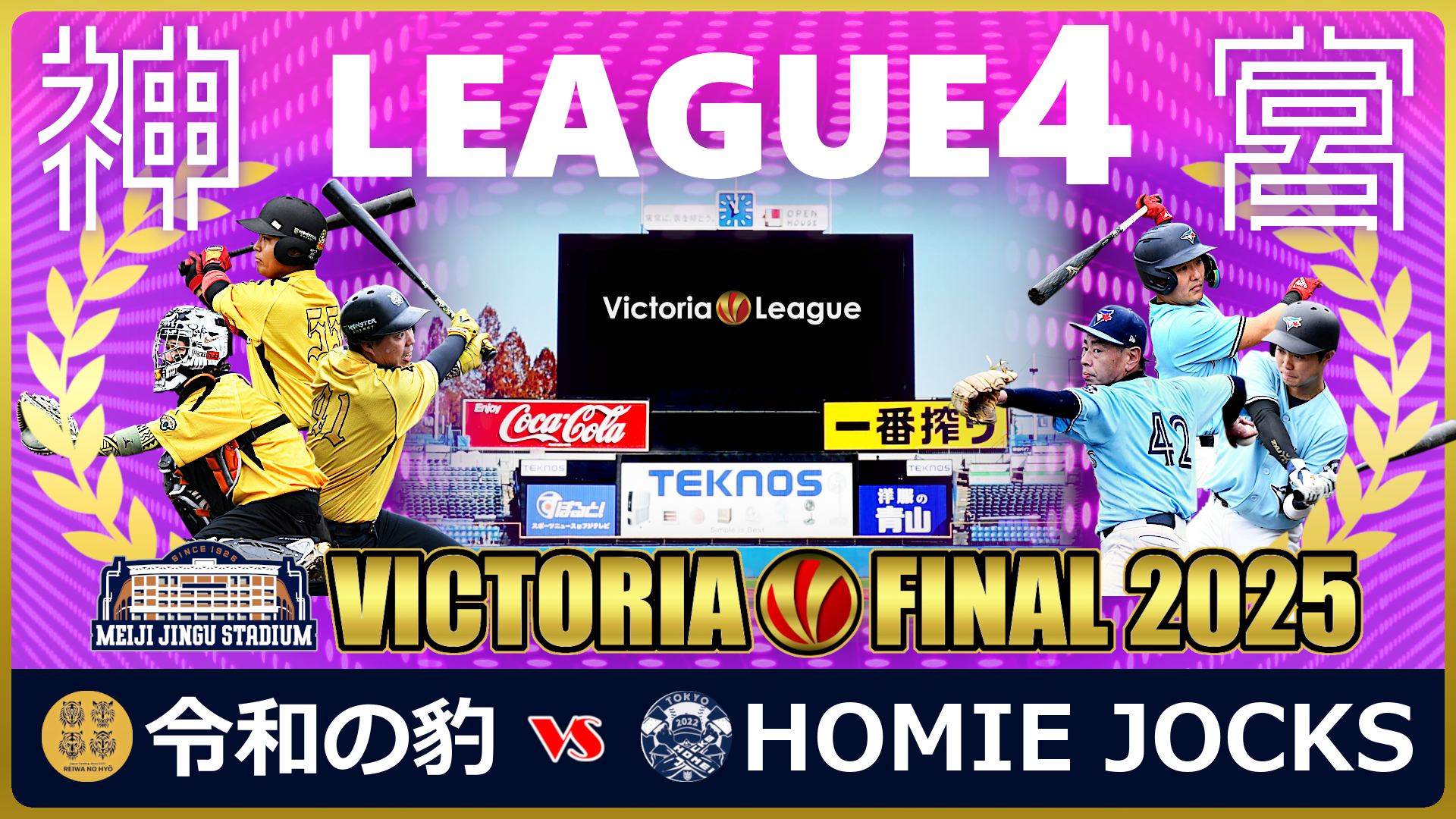 同点とされた令和の豹は4回表、前のイニングから2番手としてマウンドに上がったHOMIE JOCKSの小林を攻め、2つのフォアボールとヒットで2アウト満塁とするが、ここは小林が踏ん張り無得点に抑える。すると4回裏、この回から2番手として登板した令和の豹の後藤に対し、HOMIE JOCKSはエラーと送りバントで1アウト3塁の勝ち越しのチャンスを迎える。打順は先頭に戻り、後藤が2球目を強く引っ張ってサード強襲のヒット。HOMIE JOCKSが3-2と逆転に成功した。勢いに乗るHOMIE JOCKSは5回裏にも、1アウト1,2塁から途中出場の久保がセンター前へタイムリーを放ち、4-2とリードを広げる。一方の令和の豹は初回以降もチャンスを作りながら、HOMIE JOCKS投手陣を打ち崩せず試合終了。最終スコア4-2でHOMIE JOCKSが勝利し、悲願の4部リーグ優勝を飾った。大会MVPには、4回裏に勝ち越し打を放った後藤が選ばれた。(詳しくはライブ配信動画をご覧下さい)